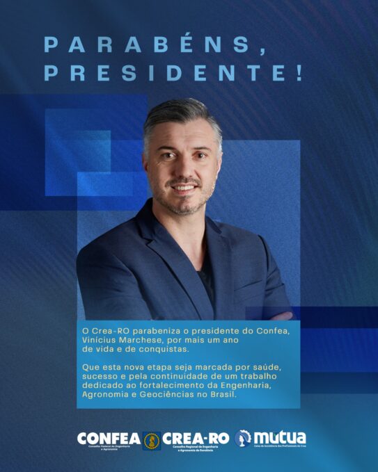 O Conselho Regional de Engenharia e Agronomia de Rondônia (Crea-RO), em nome de seu presidente, Edison Rigoli, parabeniza o presidente do Conselho Federal de Engenharia e Agronomia (Confea), Vinicius Marchese, pela passagem de seu aniversário. A data é uma ...
