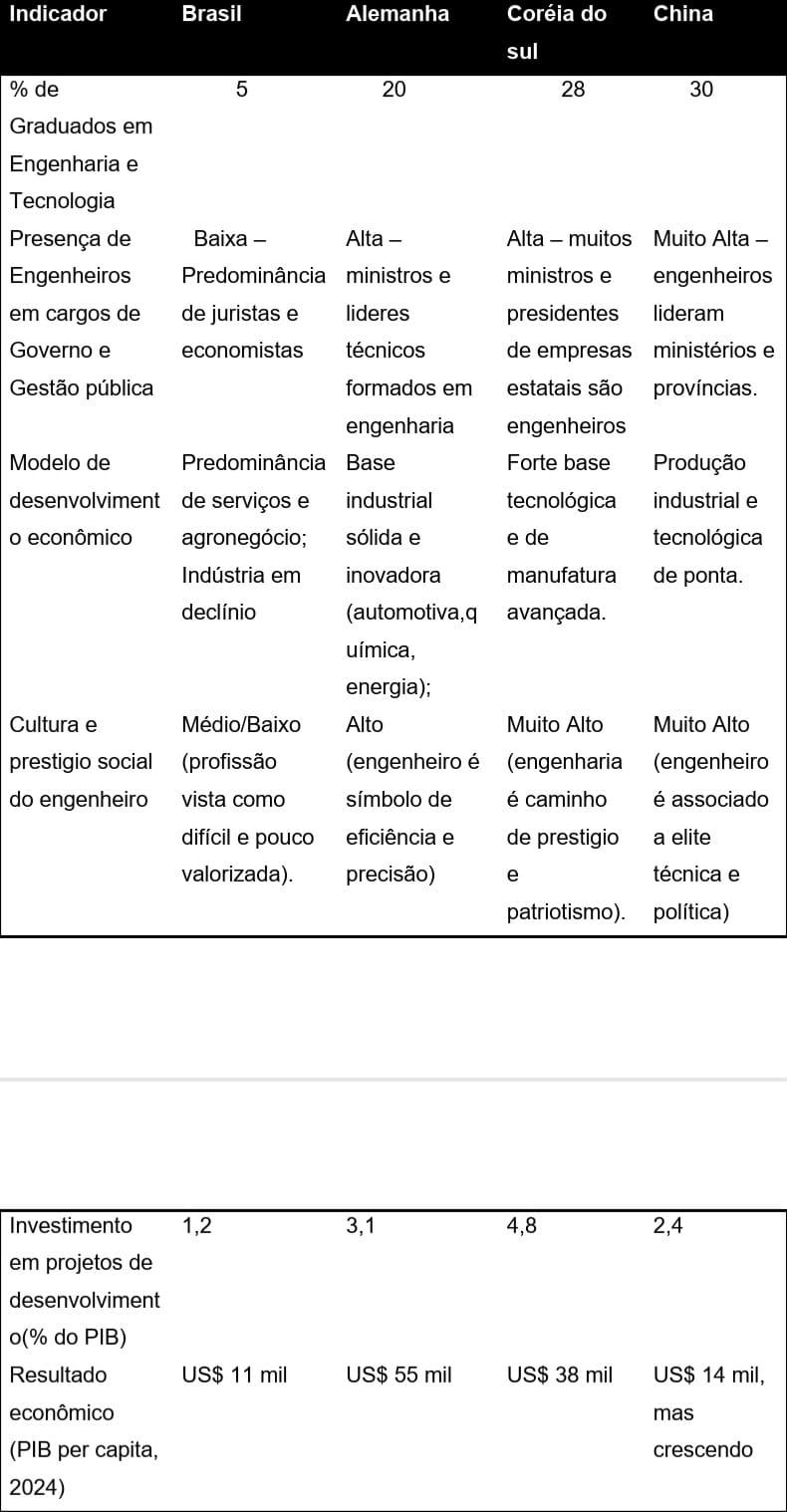 Em contrapartida, países que valorizam a engenharia: