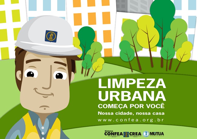 Para tanto, o Confea convida todos a se engajar nessa campanha e conscientizar a família, os colegas de trabalho, todos à sua volta. Confira o cartaz que será distribuído a todas as entidades regionais e nacionais, aos Conselhos Regionais de Engenharia e Agronomia (Creas), de modo que esse conceito “Limpeza Urbana Começa por Você” seja internalizado pelos profissionais e esses se tornem multiplicadores dessa prática para um mundo melhor.