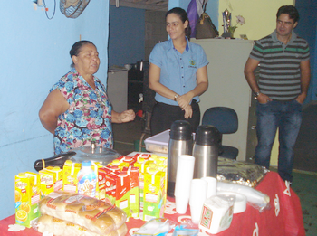 Na ocasião foi servido também um delicioso café da manhã com bolo, pipoca, suco, cachorro-quente, refrigerante, salgadinho e sanduíche.