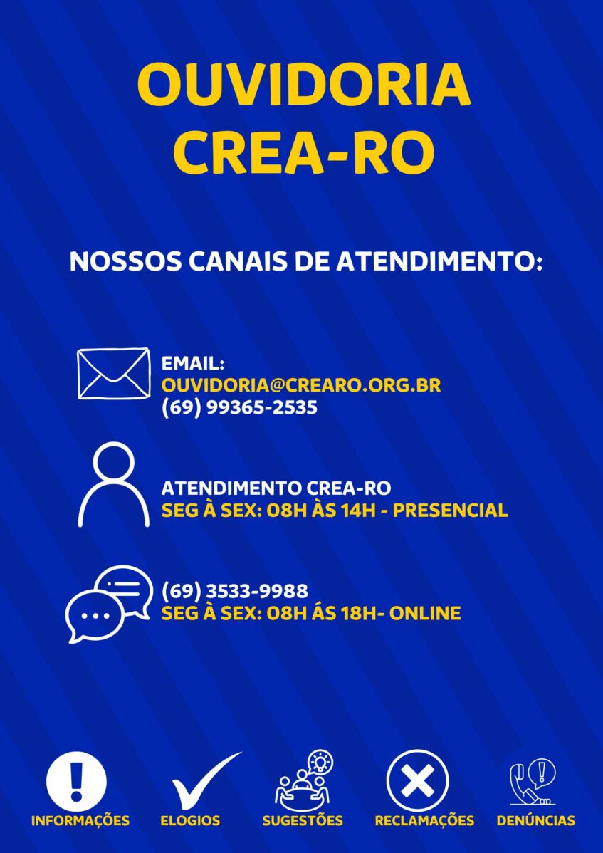 Esse canal é fundamental para o aprimoramento dos serviços do Crea-RO, contribuindo para o fortalecimento da cidadania e para uma gestão cada vez mais transparente, ética e democrática.