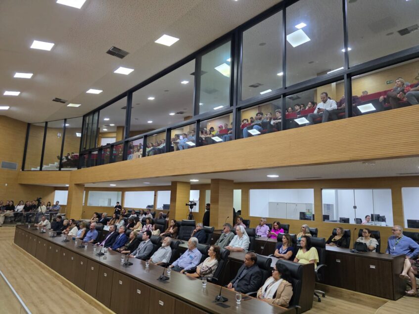A solenidade ocorreu no Plenário “Deputada Lúcia Tereza Rodrigues dos Santos”, no Palácio Marechal Rondon, e foi conduzida pelo o deputado Alan Queiroz, autor da homenagem.